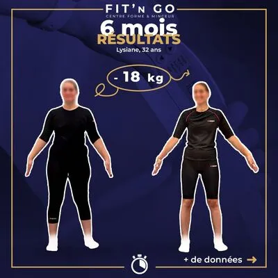 - Perte de 18 kg : Grâce à l'EMS, Lysiane a réussi à perdre 18 kg, transformant sa silhouette de manière spectaculaire.